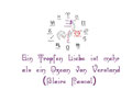Der Widder zickt, der Stier ist in sich gekehrt, der Löwe ein Kuscheltier, die Zwillinge ziehen gemeinsam eine Schnute, die Waage ist aus dem Gleichgewicht, der Steinbock äst, der Skorpion biegt sich, der Krebs zwickt, der Schütze entspannt, die Jungfrau verschließt die Augen vor diesem Chaos und lächelt hingebungsvoll!